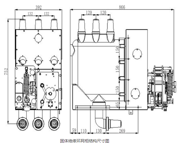 固體柜的固體絕緣系統采用APG工藝成型的固封極柱將真空滅弧室和上下出線座等載流導體封裝成一個整體。隔離開關安裝在固封極柱的腔體內,使得相間絕緣以固體絕緣方式為主絕緣方式。單相母線可擴展設計,實現功能單元無線擴展。