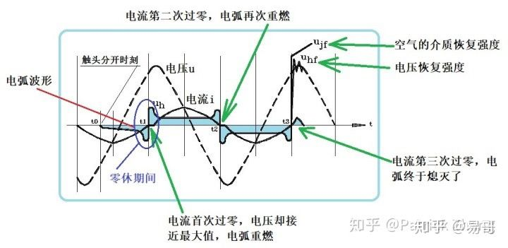 還要注意,在交流電路中,電流和電壓過零點的時刻往往不是同步的,這要取決于負載的類型。