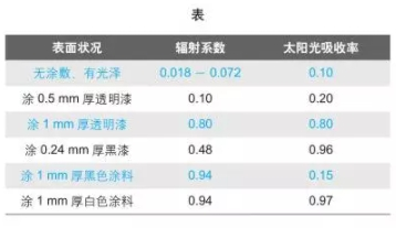 亮時,輻射系數較低,常需涂敷或陽極處理以增加描射系數。