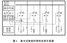 1集中式智能環(huán)網(wǎng)柜總體方案智能環(huán)網(wǎng)柜是利用現(xiàn)代的電力電子、自動化控制、傳感測量等技術(shù)將10kV負(fù)荷開關(guān)柜、斷路器柜、熔斷器柜、互感器與保護(hù)裝置、通信裝置、計(jì)量儀表等模塊組合在一起,實(shí)現(xiàn)電網(wǎng)一次設(shè)備與二次設(shè)備的良好結(jié)合。集中式智能環(huán)網(wǎng)柜整體框架如圖1所示。